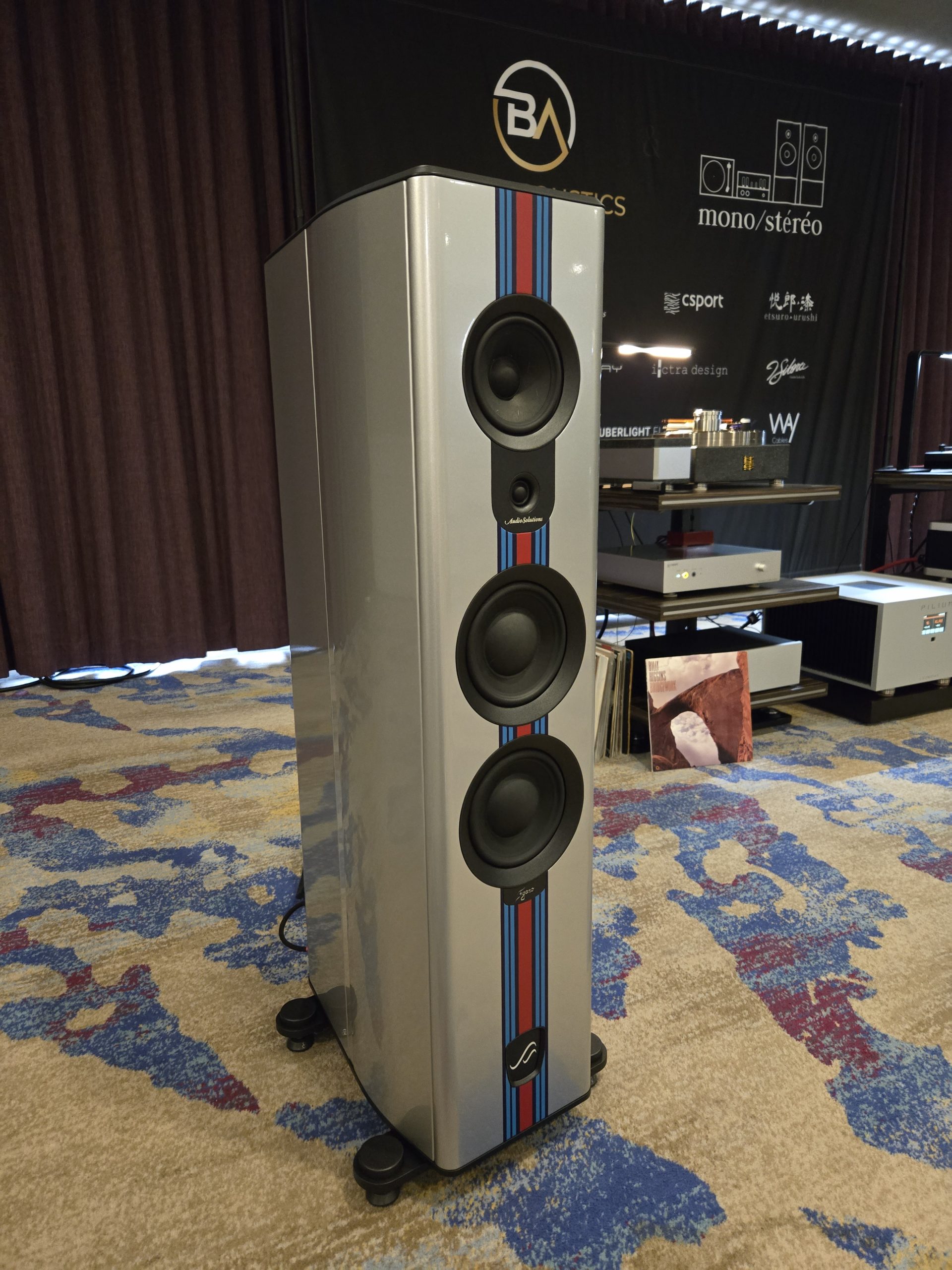 The CSPort turntable fed a CSPort CMT 1 step-up transformer ($2,350) and C3EQM2 phono stage with its optional battery power supply ($18,250 for both). Electronics were handled by the Leonidas MY 25 integrated amplifier ($71,000), driving Audio Solutions Figaro M2 loudspeakers in a custom ART Martini Racing finish (from $20,570/pair). Cabling was a mix of Luna Cables Rouge and Hemmingway, while racks and platforms came from Graphite Audio and Ictra Design.