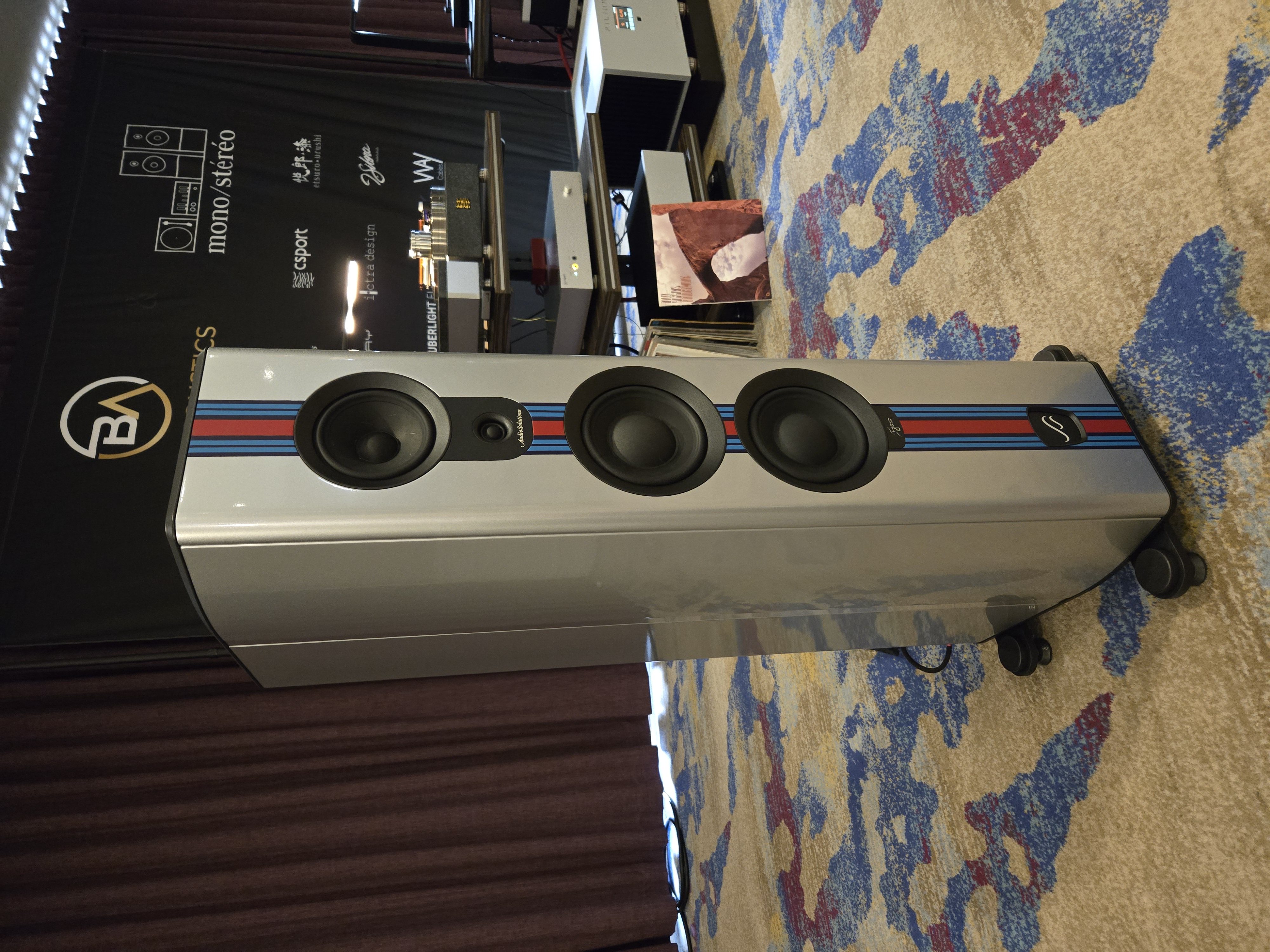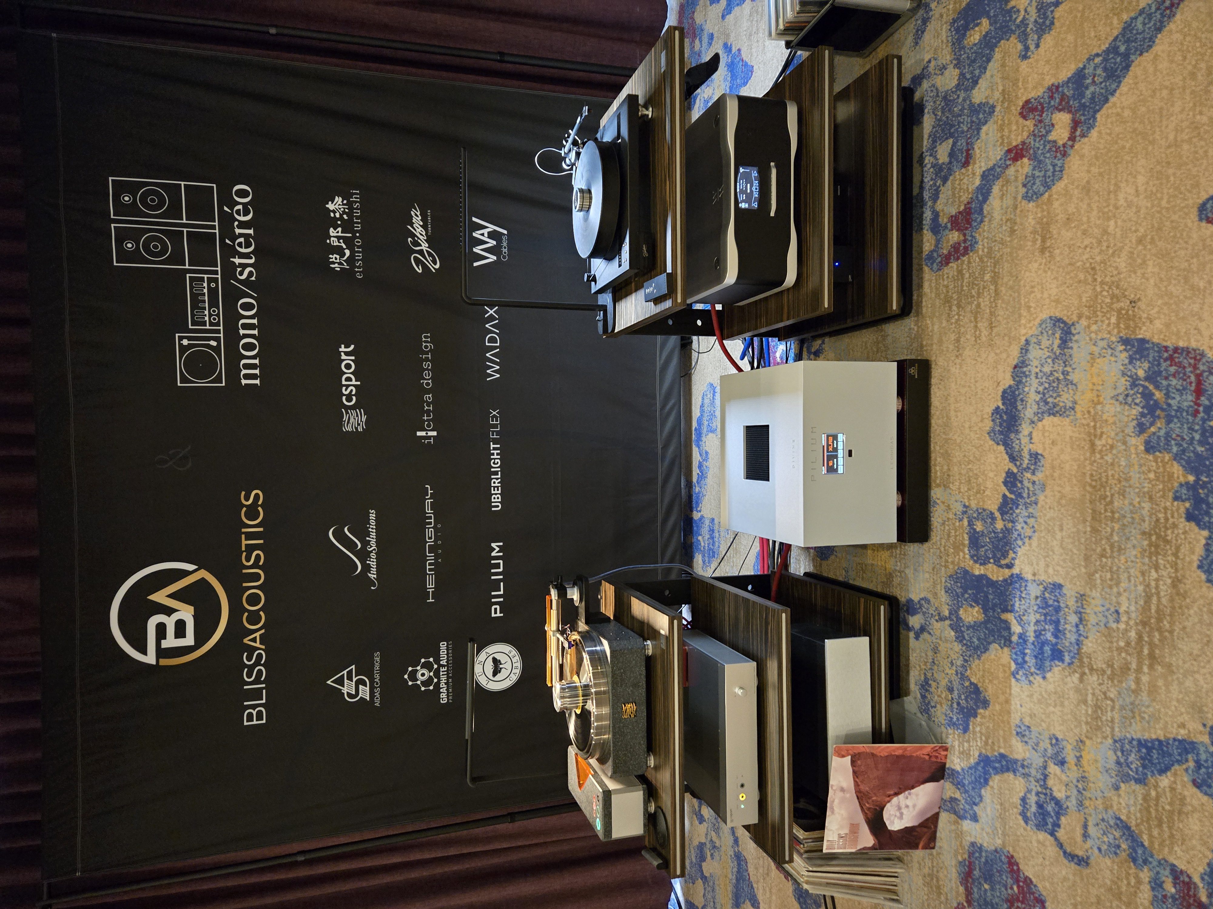 The CSPort turntable fed a CSPort CMT 1 step-up transformer ($2,350) and C3EQM2 phono stage with its optional battery power supply ($18,250 for both). Electronics were handled by the Leonidas MY 25 integrated amplifier ($71,000), driving Audio Solutions Figaro M2 loudspeakers in a custom ART Martini Racing finish (from $20,570/pair). Cabling was a mix of Luna Cables Rouge and Hemmingway, while racks and platforms came from Graphite Audio and Ictra Design.