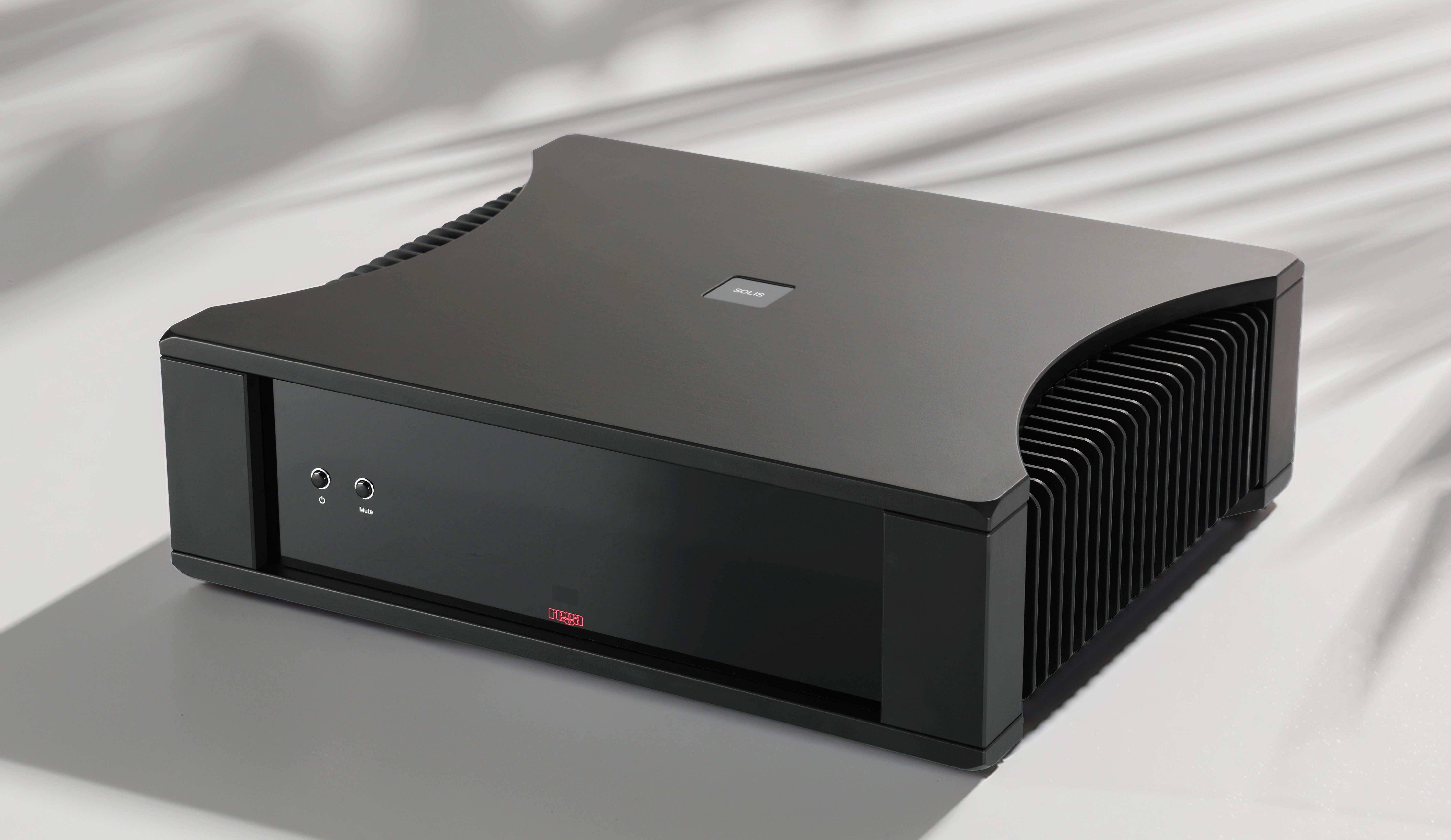 L’amplificateur Solis, annoncé à 168 W par canal sous 8 ohms et 305 W sous 4 ohms, propose des entrées symétriques et asymétriques, et reprend l’esthétique du Mercury, bien qu’il n’arbore que deux boutons en façade — Marche et Muet.