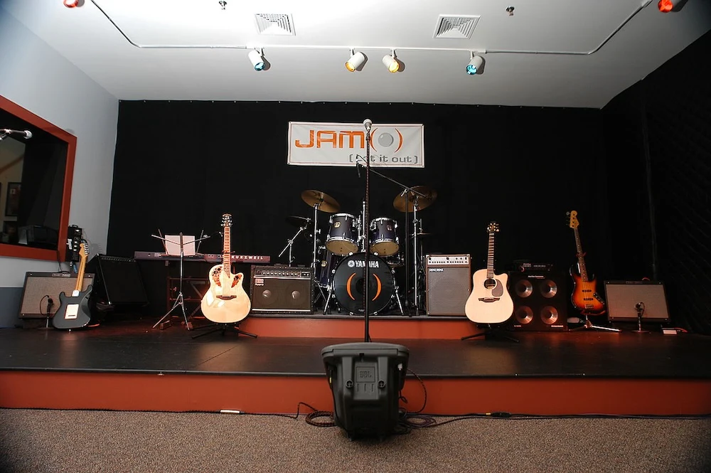 Salle de répétition professionnelle au JamSpot, Boston, Massachusetts. Avec l'aimable autorisation de JamSpot/Wikimedia Commons.