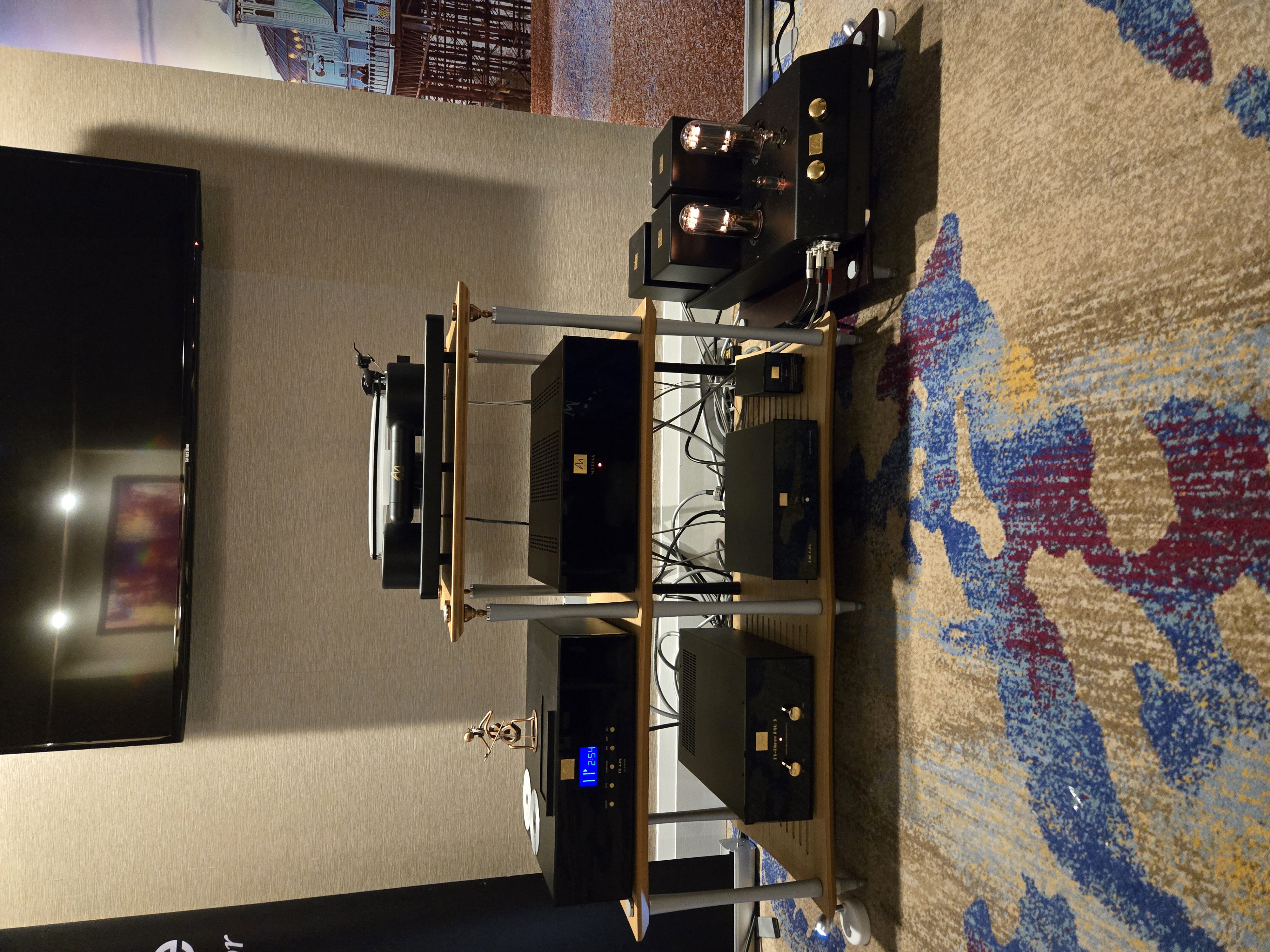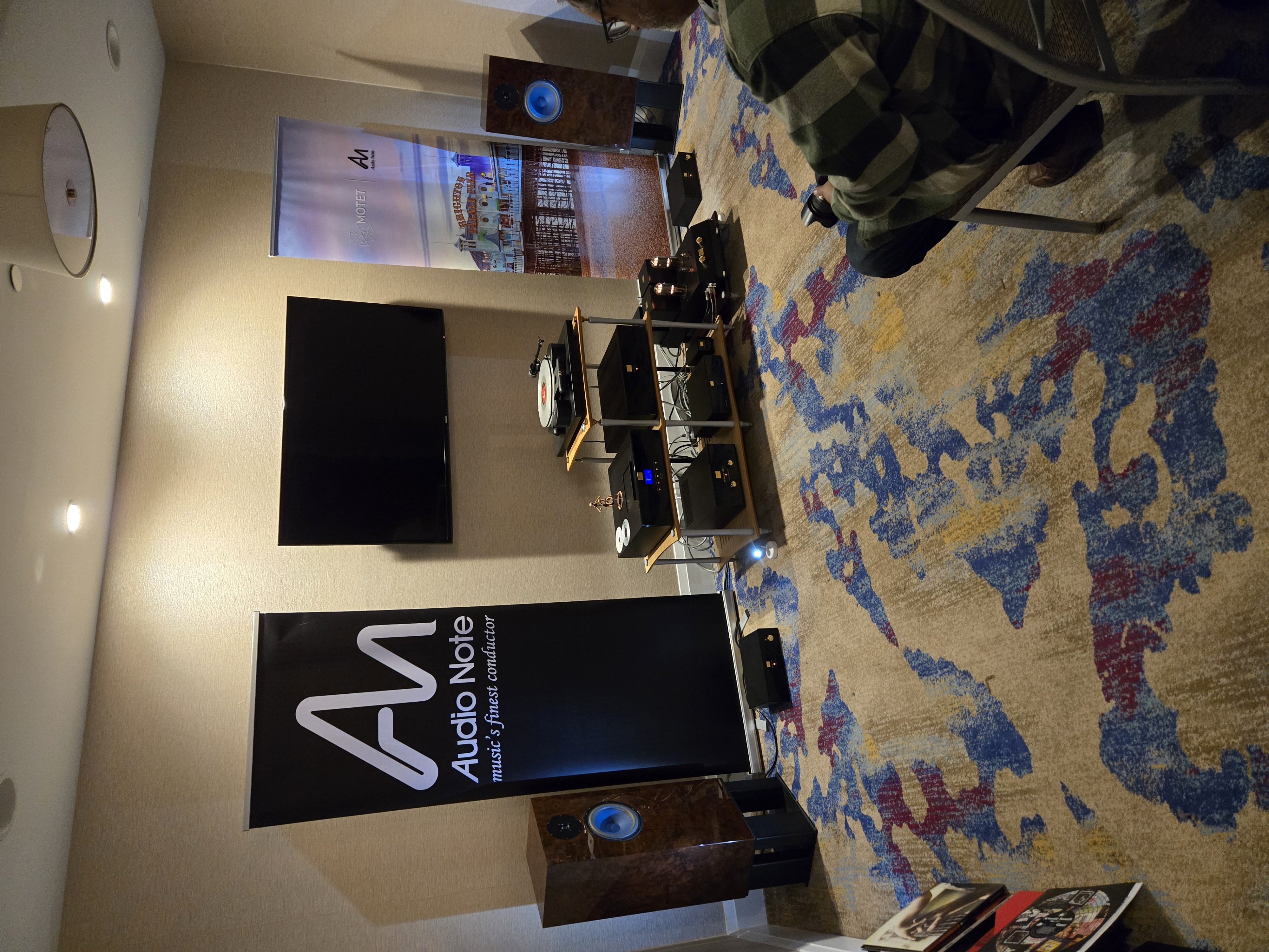 Comme toujours, le système était entièrement signé Audio Note, jusqu’au câblage. Le système que j’ai entendu comprenait une paire d’enceintes AN-E/SPx Ltd (97 000 $ la paire), un amplificateur intégré Jinro (53 000 $) et un lecteur CD 4.1x (24 900 $). Non utilisé lors de ma visite, l’ensemble analogique comprenait une platine TT3 et son alimentation PS3 (27 500 $), un bras de lecture Arm 3 (5 250 $) et une cellule IO II (12 550 $).