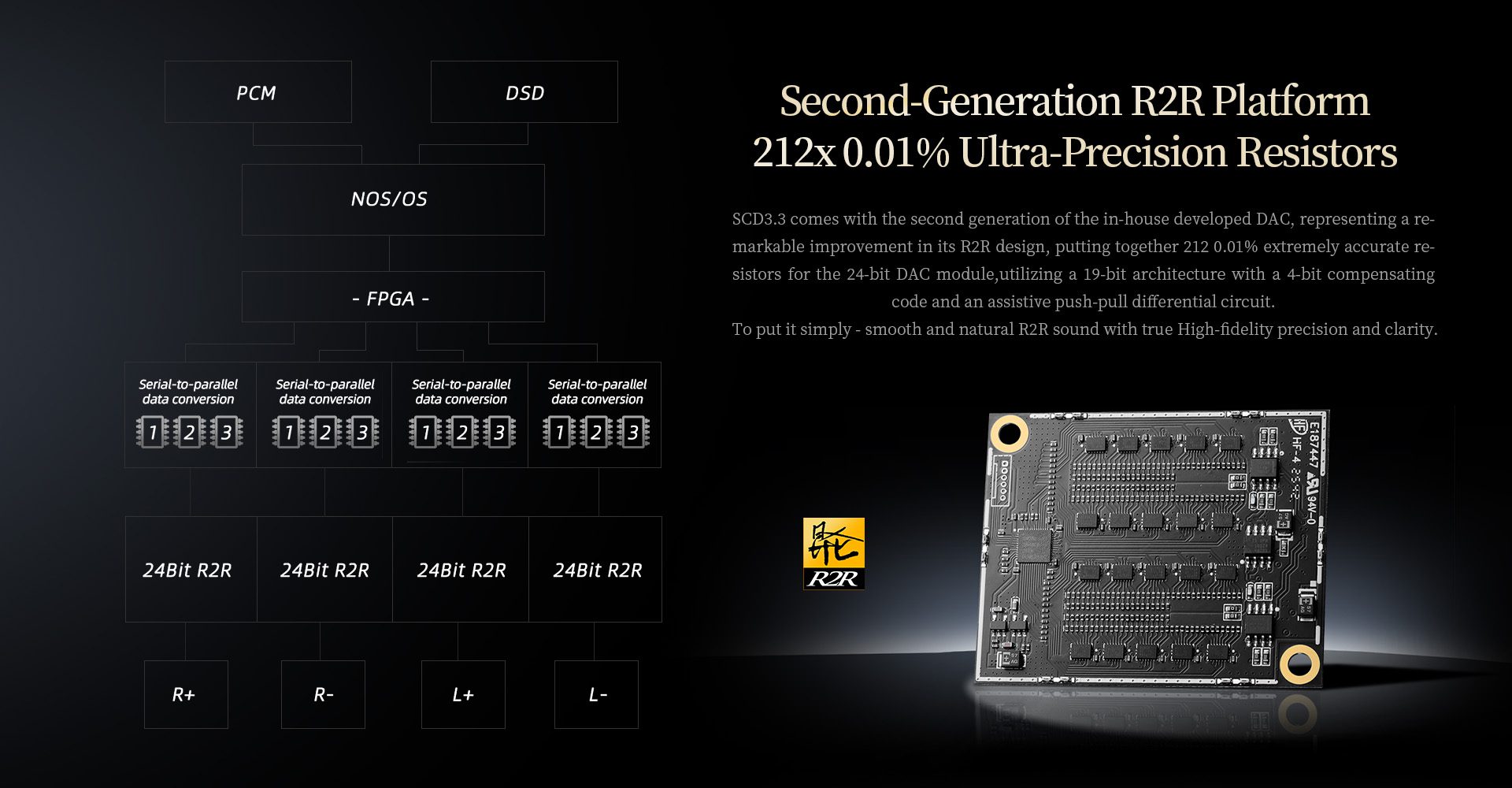 Rather than relying on an off-the-shelf chip, Shanling developed a discrete R2R ladder DAC, now in its second generation. Built with 212 ultra-precision 0.01% resistors, this architecture offers a linear, natural sound with low distortion and high resolution.