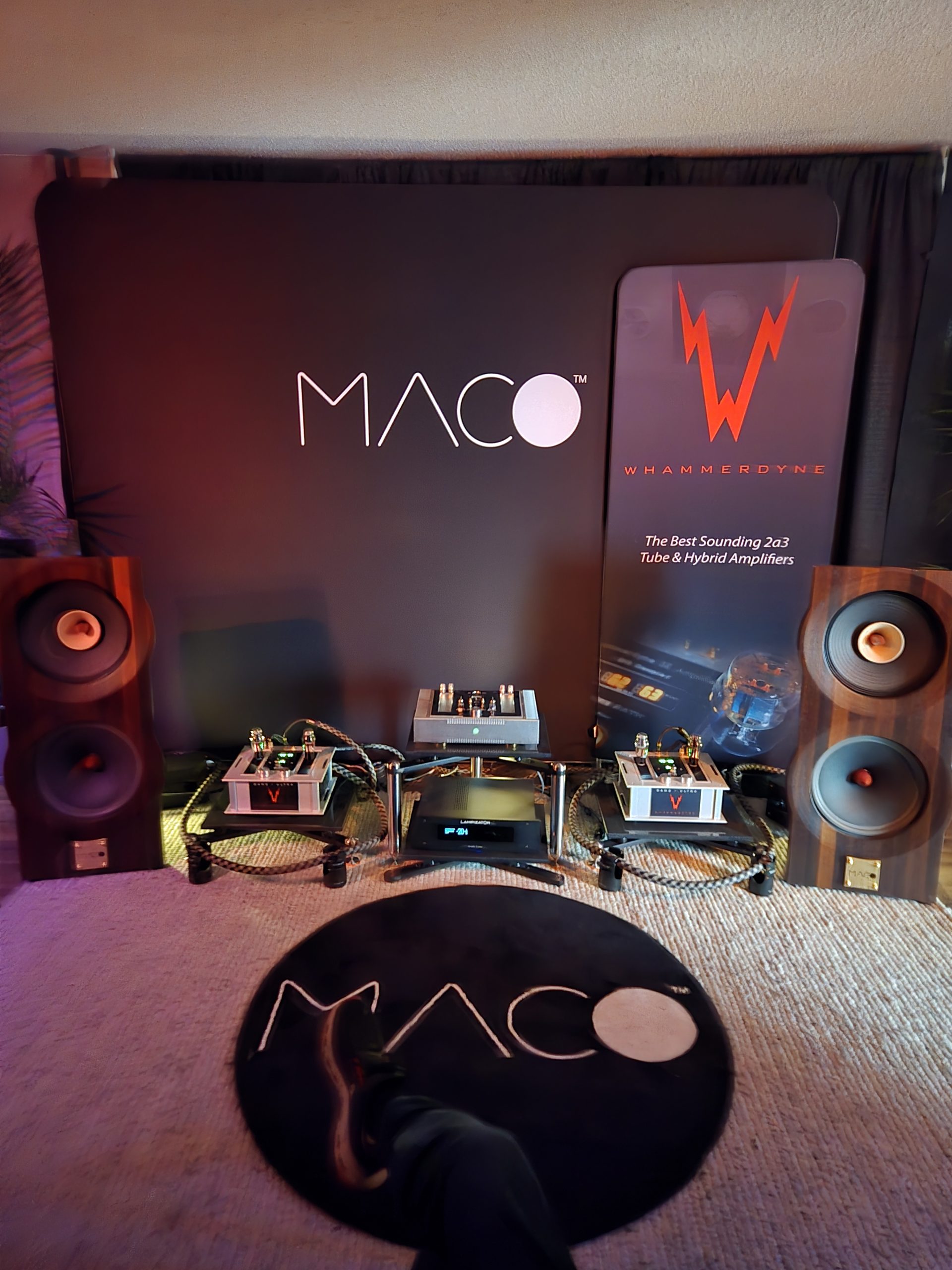 MACO’s Macaria open-baffles and Whammerdyne’s 2A3 monoblocks delivered ultra-transparent, tactile sound with striking vocal intimacy.