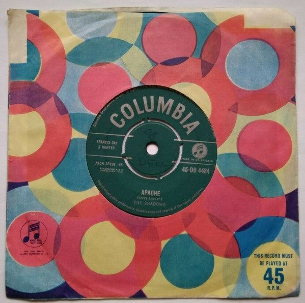 3- The Shadows – “Apache”. Columbia – 45DB 4484 (UK) (1960, July), 7-inch, 45 rpm). Genre: instrumental surf rock.