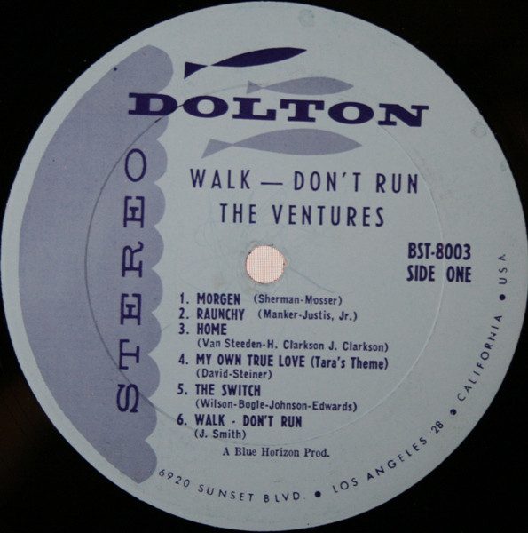 2- The Ventures – Walk, Don’t Run. Dolton Records – BST 8003 (1960, Dec.), 33 1/3 rpm. Genre: instrumental surf rock.