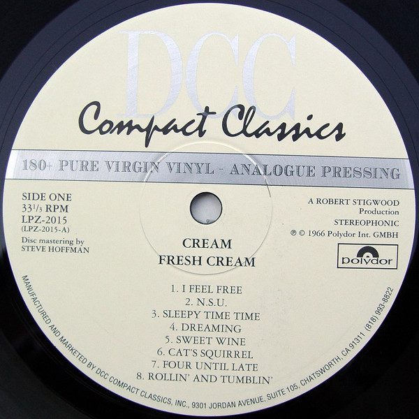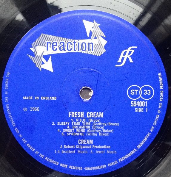 50- Cream โ Fresh Cream. Reaction โ 594001 (1966, Dec.), DCC Compact Classics โ LPZ 2015 (1996), 33 1/3 rpm. Genre: blues rock, psychedelic rock.