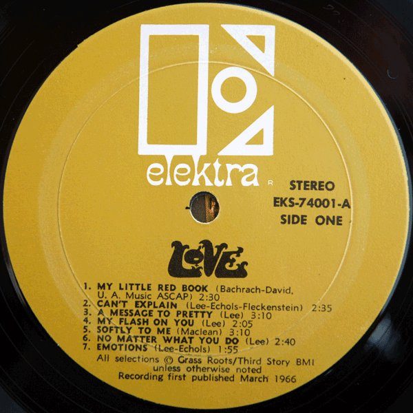 37- Love โ Love. Elektra โ EKS-74001 (1966, Mar.), 33 1/3 rpm. Genre: folk rock, garage rock, psychedelic rock, R&B.