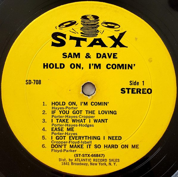 38- Sam & Dave โ Hold On, Iโm Cominโ. Stax โ SD 708 (1966, Apr.), 33 1/3 rpm. Genre: Memphis soul.