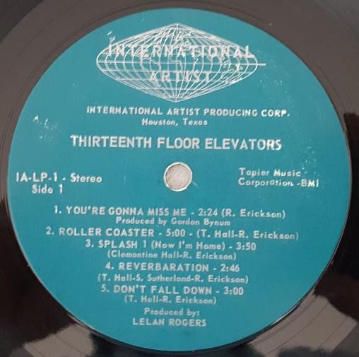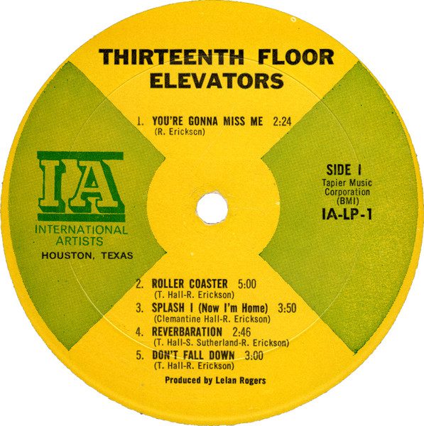 48- The 13th Floor Elevators โ The Psychedelic Sounds of the 13th Floor Elevators. International Artists โ IA-LP-1 (mono or stereo) (1966, Oct.) 33 1/3 rpm. Genre: psychedelic rock, garage rock, acid rock, R&B.