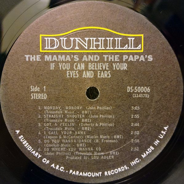 36- The Mamas & the Papas โ If You Can Believe Your Eyes and Ears. Dunhill โ DS-50006 (1966, Feb.), 33 1/3 rpm. Genre: folk rock, pop rock, sunshine pop.