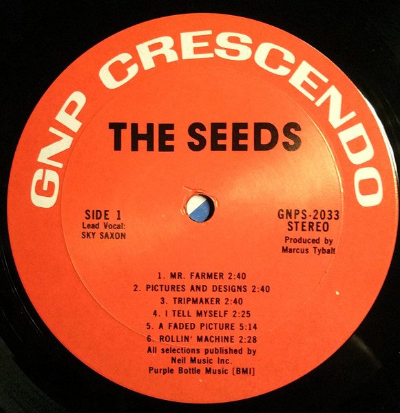 40- The Seeds โ The Seeds. GNP Crescendo โ GNPS 2023 (1966, Apr.), 33 1/3 rpm. Genre: garage rock, psychedelic rock, proto-punk, acid rock.