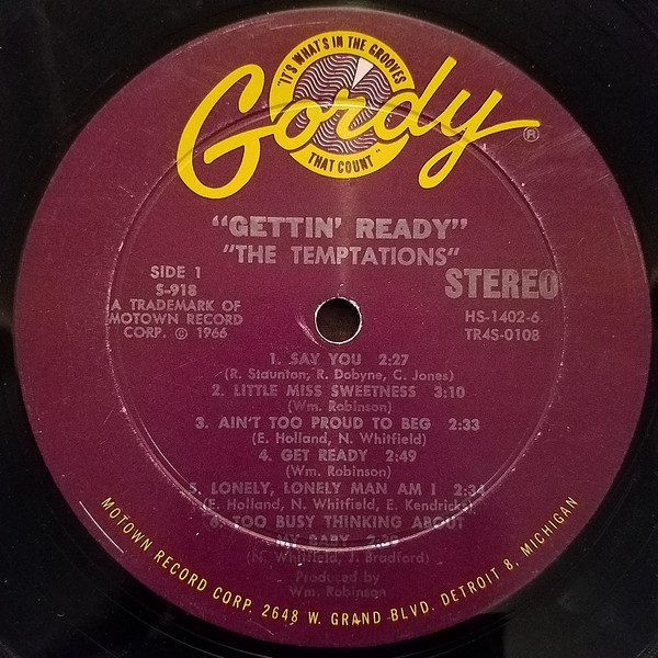 The Temptationsโ fourth album, Gettinโ Ready, features two major hit singles by different songwriters and producers: the energetic โGet Ready,โ by Smokey Robinson, and the soulful โAinโt Too Proud to Beg,โ by Norman Whitfield, who would soon take full control of the groupโs future releases.