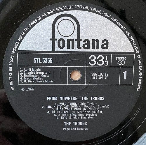 43- The Troggs โ From Nowhere. Fontana Records โ STL 5355 (UK) (1966, July), 33 1/3 rpm. Genre: garage rock, pop rock, proto-punk.