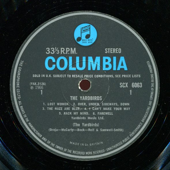 44- The Yardbirds โ Yardbirds โ Columbia โ SCX 6063 (UK) (1966, July), 33 1/3 rpm. Genre: psychedelic rock, garage rock, blues rock, blues, beat, folk rock, experimental pop, raga rock, British R&B.