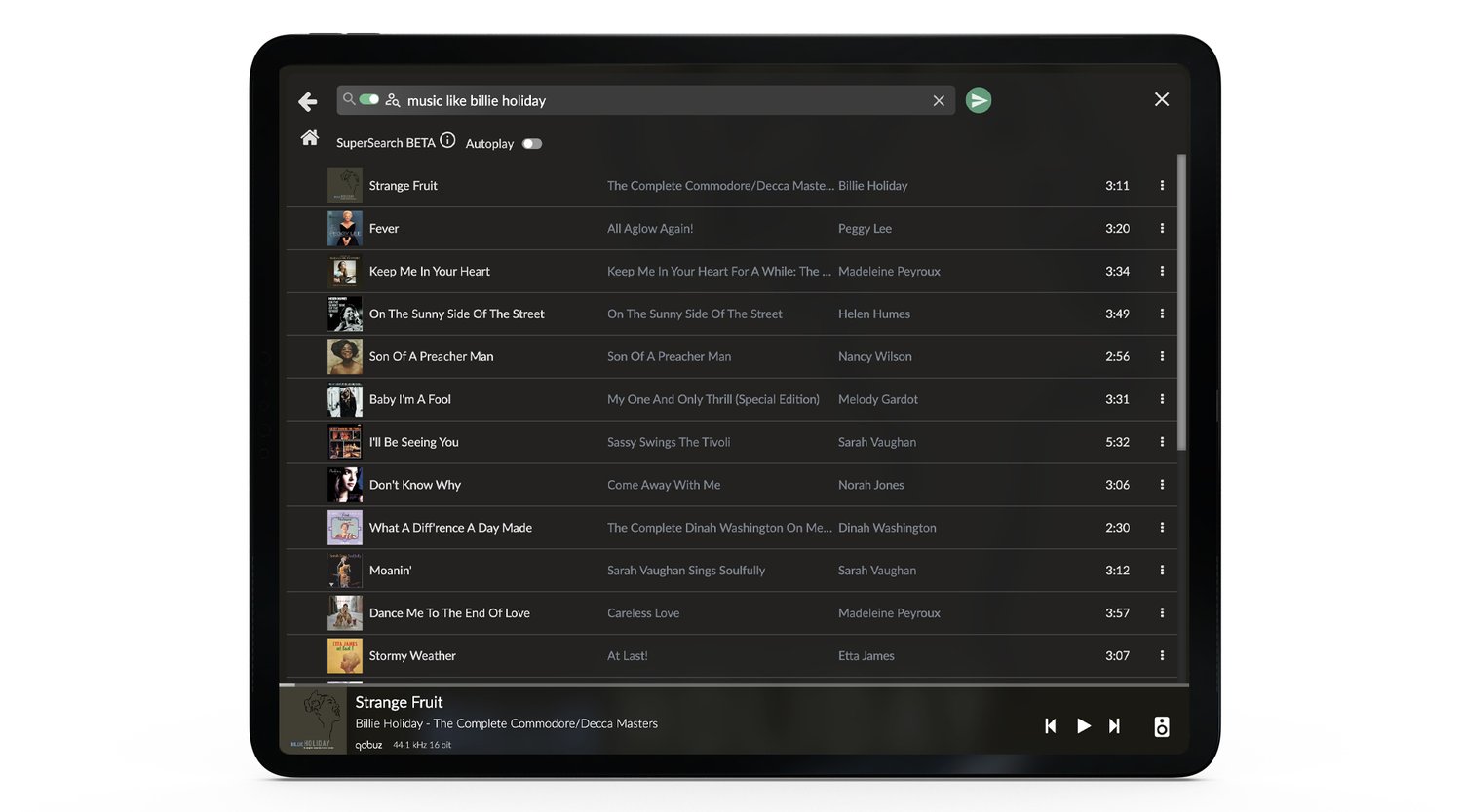 Simply describe what you would like to hear in a few words and Supersearch will give you some recommendations; just like asking a friend or your favourite independent record store guru.